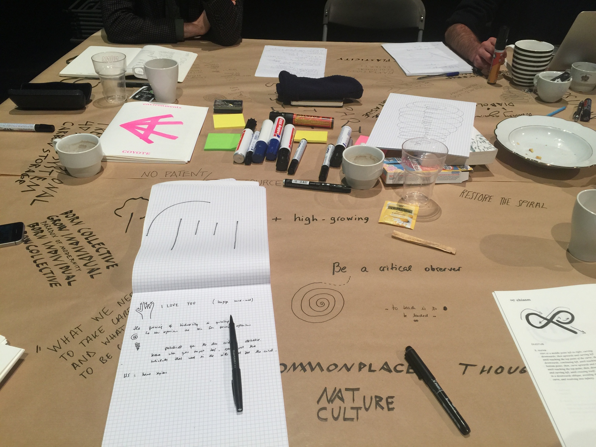 Through words, sounds, images and signs, COYOTE activated and enlarged Environments, their open-ended environmental lexicon as an attempt to think, feel, act and remain in an increasingly devastated and contaminated world. Each member of the collective engaged in a short individual presentation, juxtaposing and sequencing together the manifold aspects of their travels to and from Mechelen through this year of thirteen moons.
