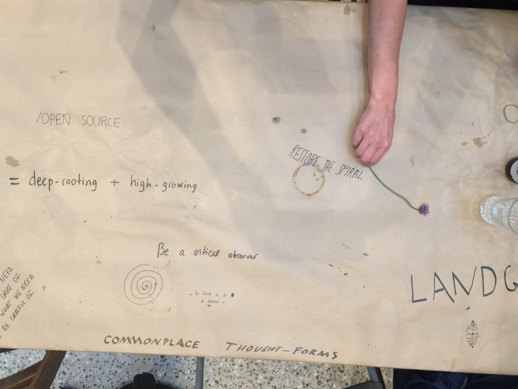 For the first day of Contour’s full moon cycle, COYOTE proposed a one-day experimental drawing and writing workshop, focused on expanding their environmental lexicon as a tool for an environmental activism, with willing participants in Mechelen. The workshop hosted local speakers, such as circular agriculture advocate and local agronomist Louis de Bruyn and activist Eline Arlt from Youth for Climate Mechelen.