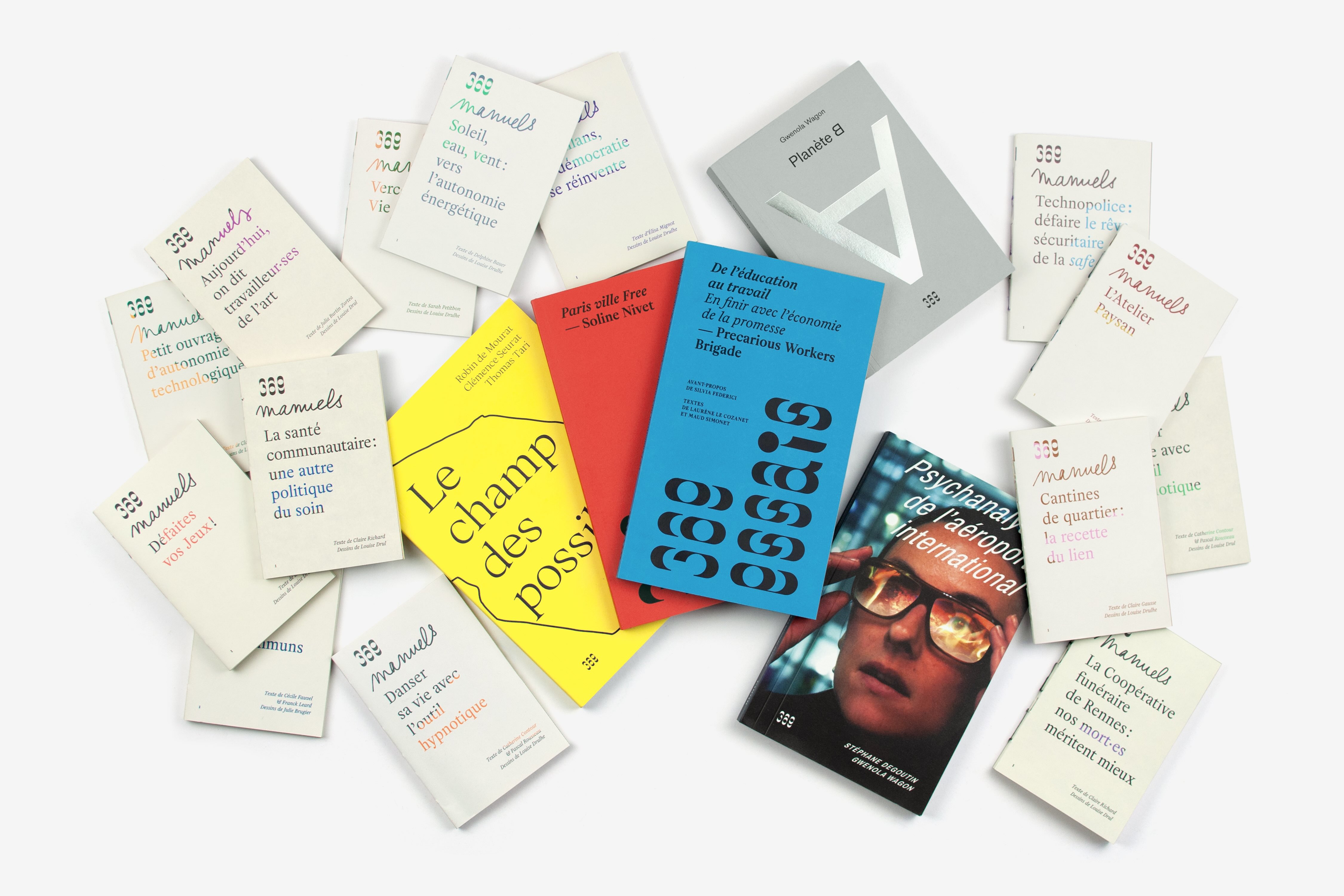 Les manuels 369 décrivent des alternatives politiques, qui élaborent des réponses singulières et situées à des problématiques contemporaines. Ces enquêtes de terrain prennent la forme de récits polyphoniques enrichis d’illustrations originales et de ressources pratiques. En reliant des sujets très variés, la collection dessine un territoire où le politique se raconte, se reconfigure et s’expérimente au quotidien et par chacun·e. Les manuels sont conçus graphiquement par Fanette Mellier comme des objets modestes, sans couverture, à la reliure apparente et imprimés en bichromie. Ils sont publiés sous licence Creative Commons.