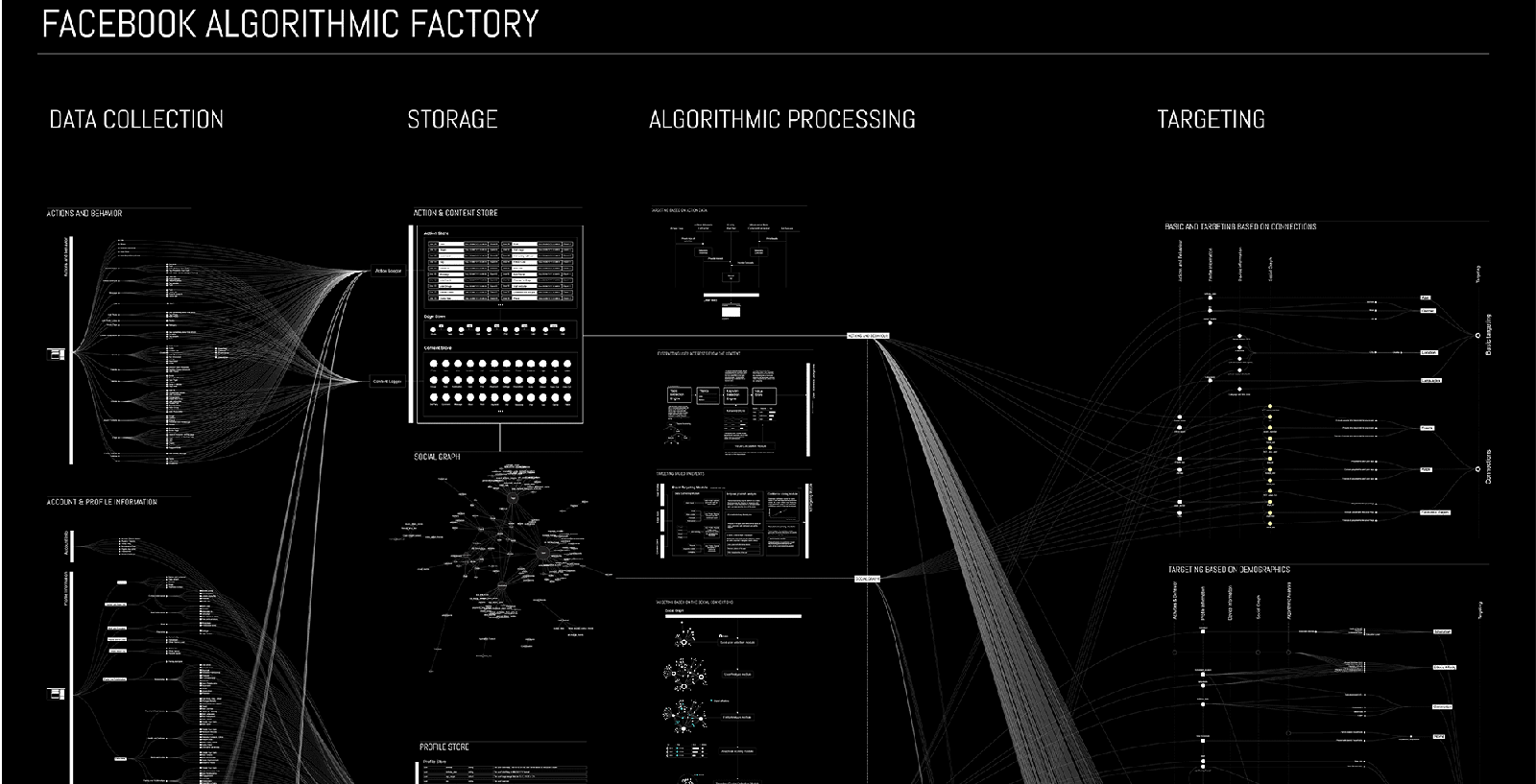 L'exposition du collectif berlinois Tactical Tech montre ce qui se joue derrière nos écrans en donnant à voir les acteurs et les mécanismes à l'oeuvre dans le web 3.0 : cartographies, visualisations, vidéos, jeu et même Data Detox Kit, pour suivre une cure d’amaigrissement de son ombre numérique.